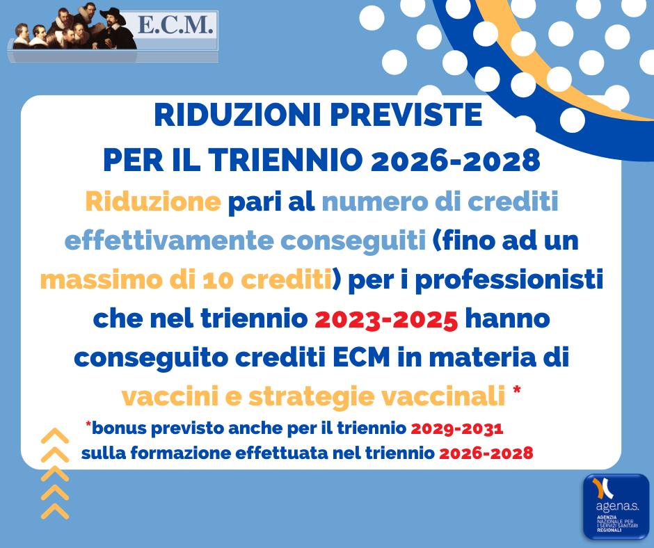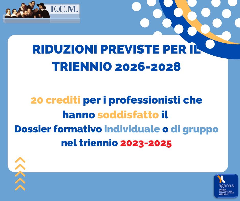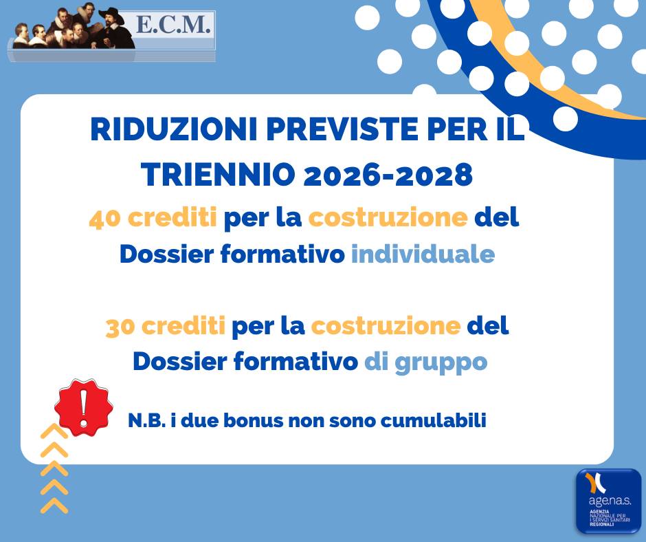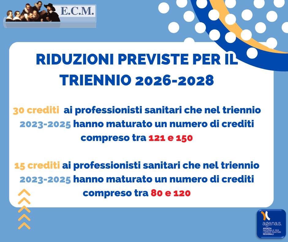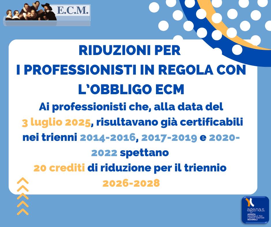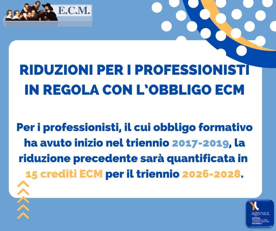 Ulteriori riduzioni sono previste per i professionisti sanitari in regola con la formazione nei trienni precedenti o che hanno partecipato attivamente alle iniziative ECM nei trienni precedenti.