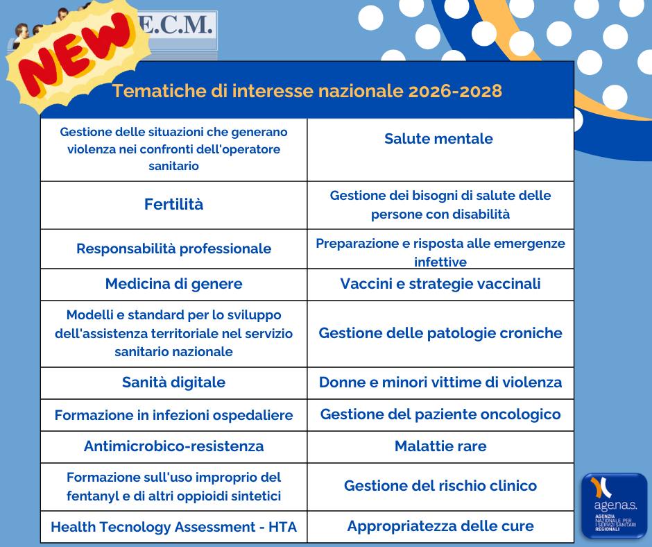 La Commissione Nazionale per la Formazione Continua, nella riunione del 05 marzo 2026, ha approvato la delibera sulle tematiche di interesse nazionale, valide per il triennio 2026/2028, eliminando al contempo quelle non più attuali.